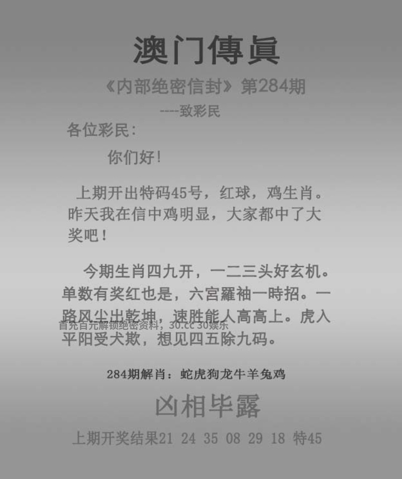 285期财神赐特:虎头虎尾一同取,一身灰衣街上跑,合上一顺机缘至,四三相送二上喘。 |